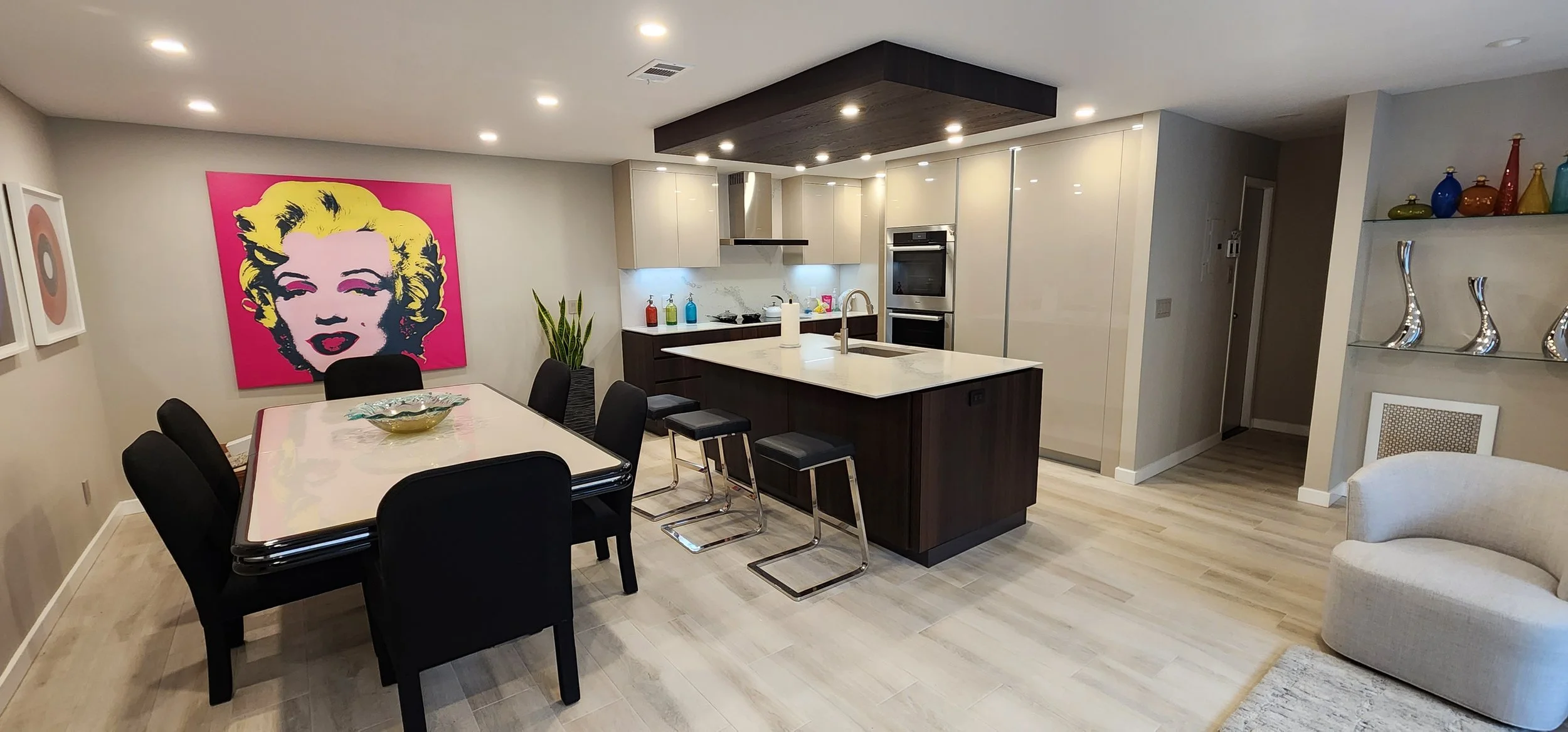 We are a full-service, high-end interior design firm and licensed + insured general contractor — handling everything from consultation and space planning (start) to construction and installation (finish).