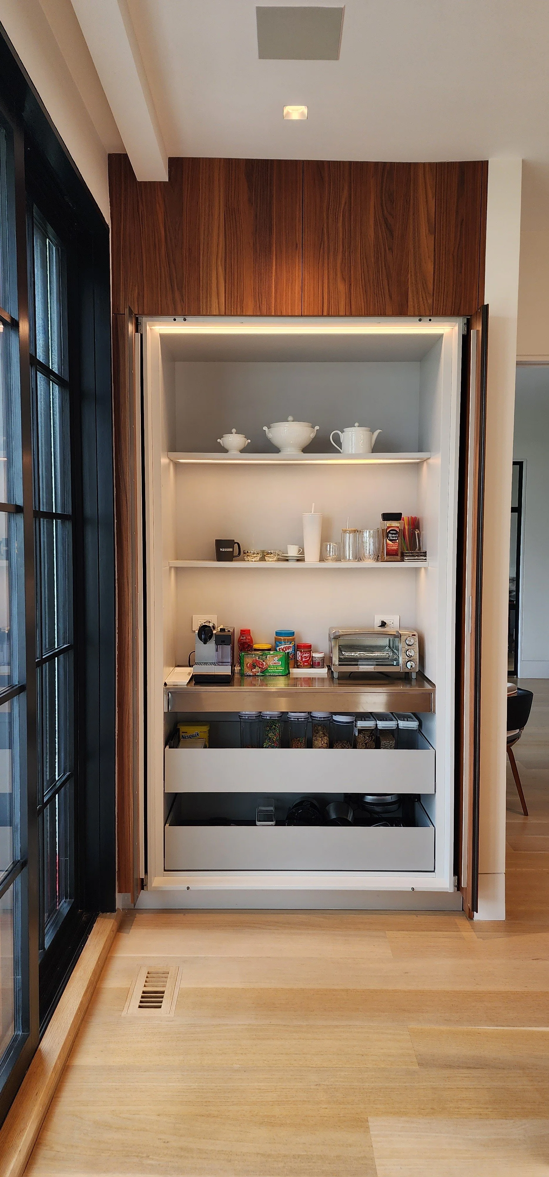 Before deciding on shelves or cabinets, you need to understand your pantry’s available area. Measure carefully and take note of any obstacles. Think about how much storage you require for everyday use and long-term stock. If you are remodeling your kitchen, your kitchen designer will be instrumental in maximizing your pantry’s space and function.